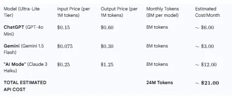 بله. برای شروع، به یه برآورد از هزینههای ماهانه APIهای LLM بر اساس تعداد توکنهای مورد نیاز در ماه نیاز دارین. بیاین از پلن قیمتگذاری پایینتر Profound به عنوان یه تخمین و از دوست قدیمیمون Gemini برای محاسبه هزینههای تقریبی استفاده کنیم.
