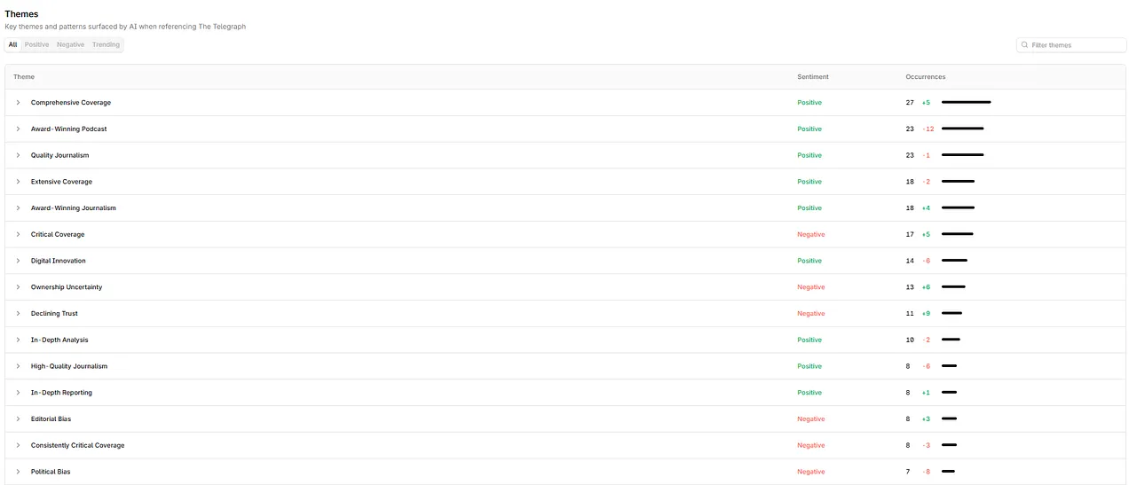 تب تحلیل احساسات در ابزار Profound (اعتبار تصویر: هری کلارکسون-بنت)