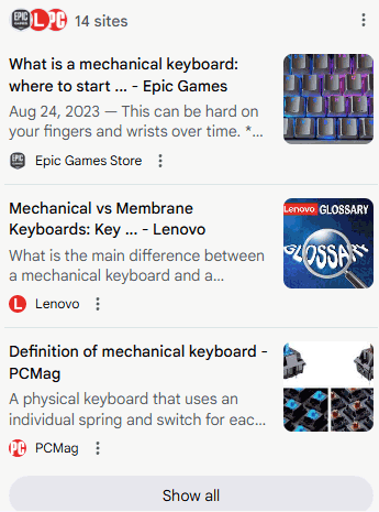 مثلا، اگه شما بپرسین «کیبورد مکانیکی چیه؟»، گوگل به سوالات زیر جواب میده: