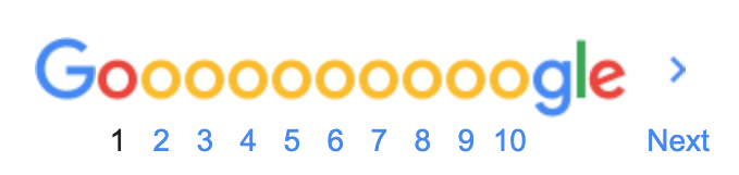 نوار صفحهبندی آشنای گوگل، با همون لوگوی کلاسیک و کشیدهی “Gooooooooogle”، دوباره برمیگرده و صفحات ۱ تا ۱۰ رو نشون میده.