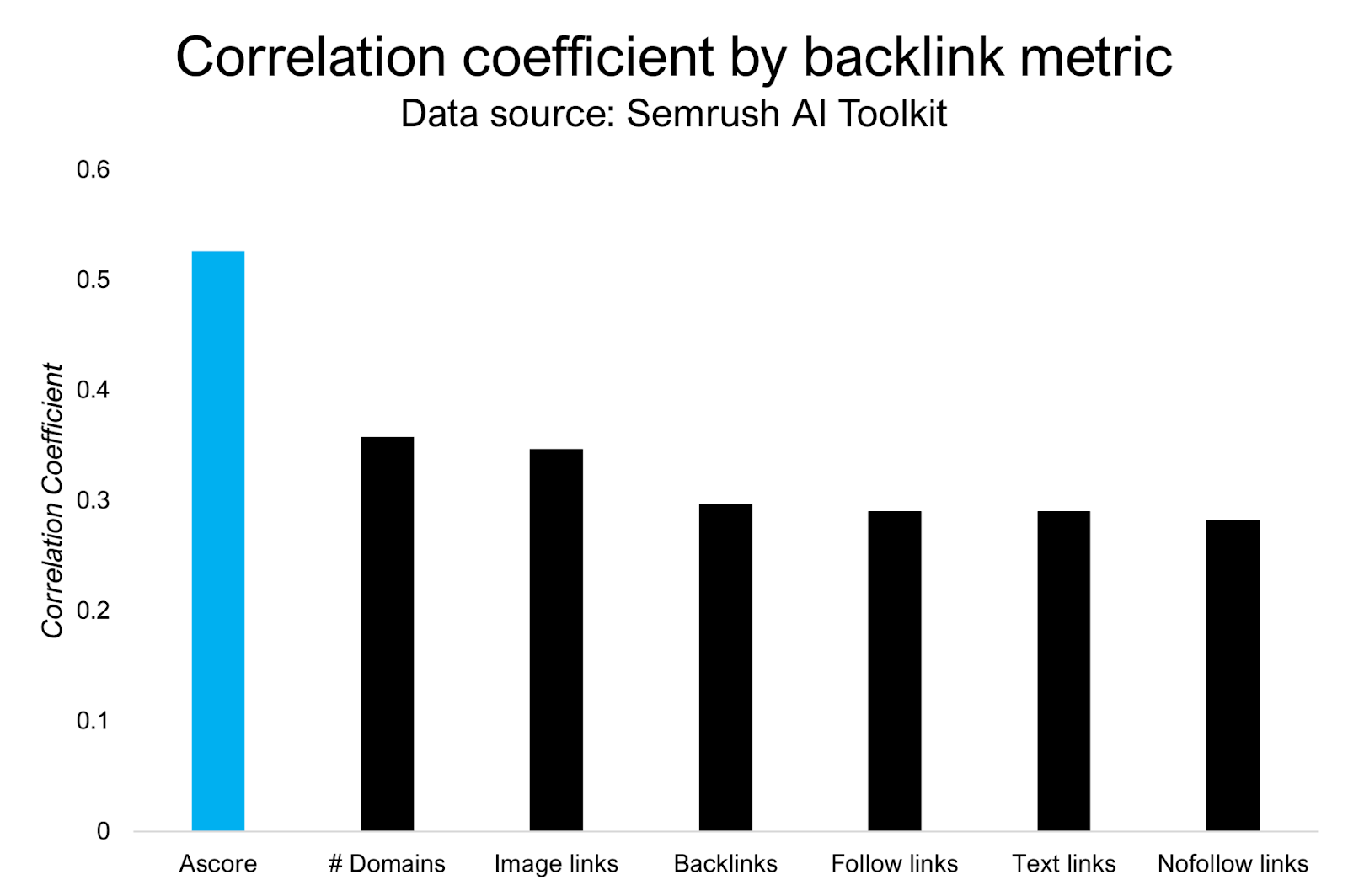 اولین سیگنالی که ما بررسی کردیم، قدرت رابطه بین تعداد بکلینکهای یک سایت و سهم از صدای اون در هوش مصنوعی (AI Share of Voice) بود.