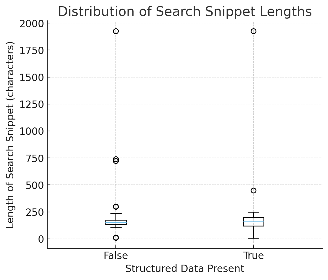 در نمودار جعبهای طول اسنیپتهای جستجو (مقایسه حالت با و بدون داده ساختاریافته):