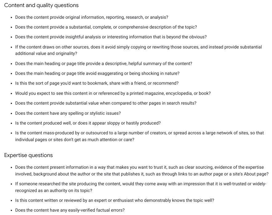 - «آیا توصیهها مفید، اورجینال و انسانمحور هستن؟» (شاید با استفاده از لیست سوالات گوگل در راهنمای محتوای مفید).