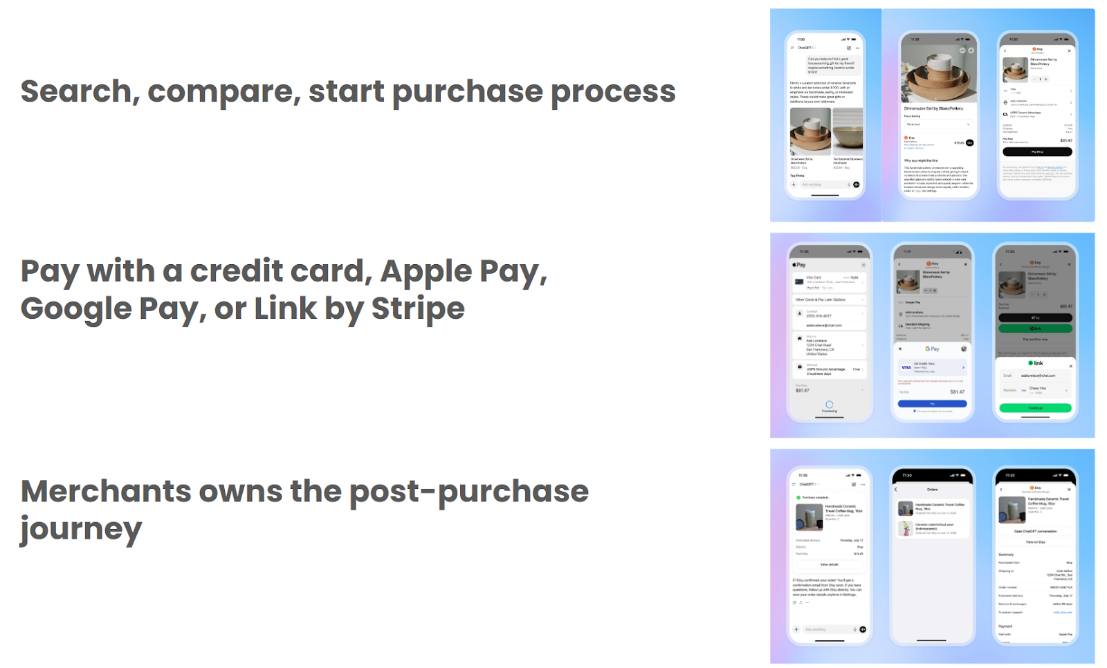 فرآیند پرداخت فوری طوری طراحی شده که ChatGPT توی تمام مراحل، از پیدا کردن محصول تا تایید پرداخت، نقش محوری رو بازی میکنه.