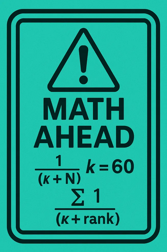 توی اکثر سیستمهای بازیابی هیبریدی، این دو روش با استفاده از قانونی به نام ترکیب رتبه معکوس (Reciprocal Rank Fusion یا RRF) با هم ادغام میشن. لازم نیست بتونید این روش رو اجرا کنید، اما درک مفهومش بهتون کمک میکنه تا چیزهایی که بعداً اندازهگیری میکنید رو بهتر تفسیر کنید.
