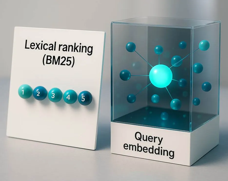 موتورهای جستجوی سنتی از «بازیابی واژگانی» (Lexical Retrieval) استفاده میکنن؛ یعنی کلمات و عبارات رو مستقیماً با هم تطبیق میدن. الگوریتم غالب در این زمینه، یعنی BM25، سالهاست که موتور محرک سیستمهایی مثل Elasticsearch و موارد مشابه بوده و امروزه هم در موتورهای جستجوی رایج استفاده میشه.