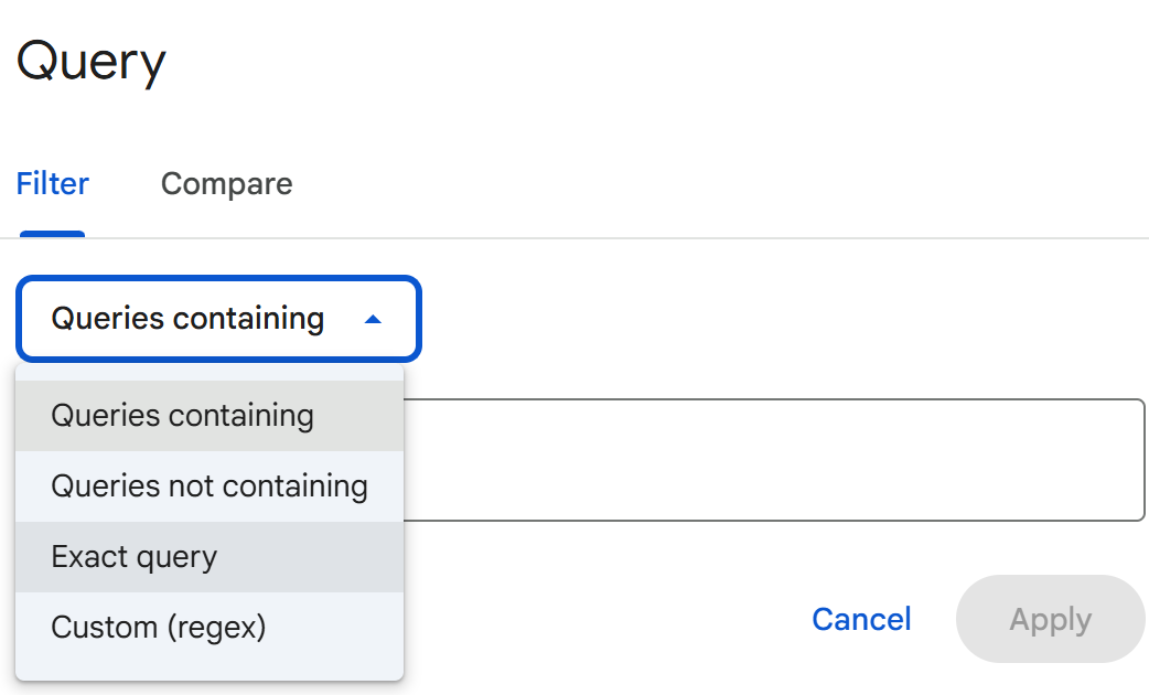 گوگل سرچ کنسول یه قابلیت فیلتر با رجکس داره که میتونید باهاش انواع خاصی از کوئریها رو جدا کنید.